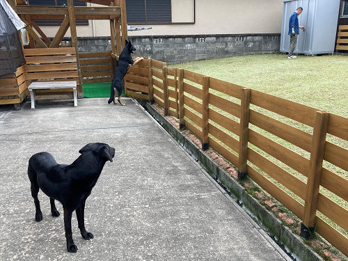 ダンナ君が作業をする間、もちろんワンたちは柵越しに応援…