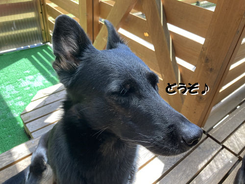 明るいデッキへ出てカレンの目の状態をしっかり確認して写真を撮ることに。