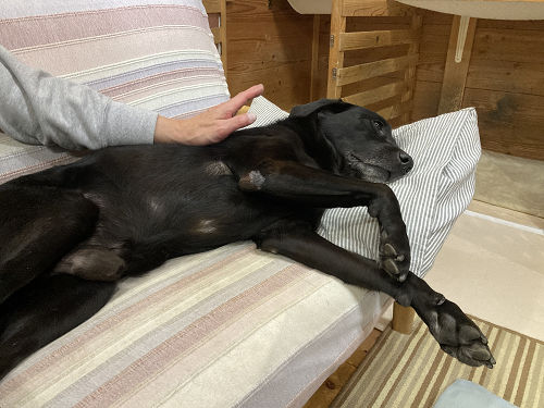 タマモクロスさんコメントありがとうございます。ごはん食べ終えて犬湯たんぽに挟まれてテレビ見てたらまぶたも落ちてきますわな(笑)。